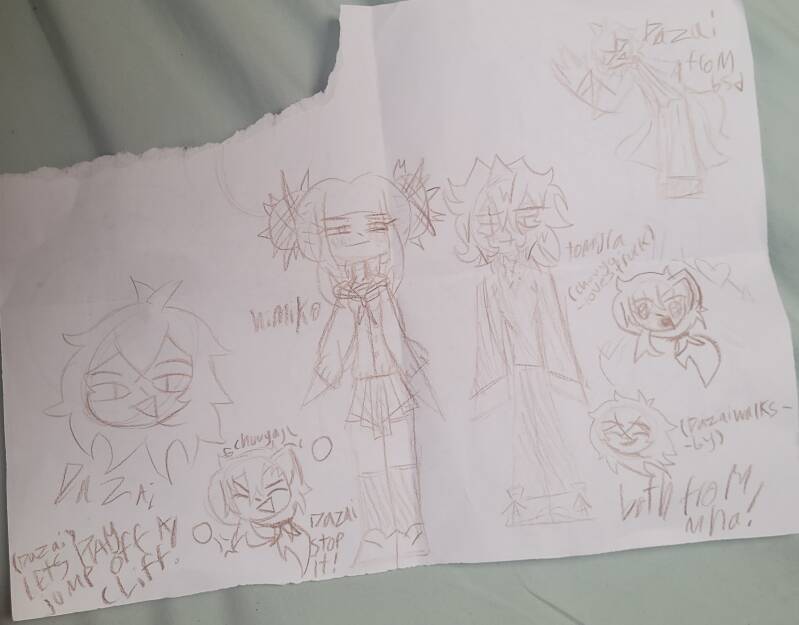 This is Chuuya and DAZAI it was the first time I drew his so he's not so good but now I can draw him better