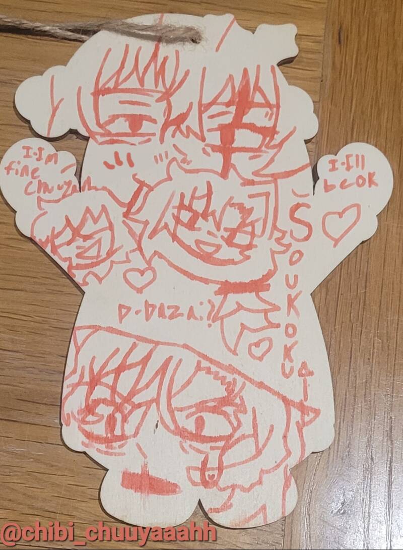I lot this dazai figure but I made it into a keychain he's hanging by a Neuse